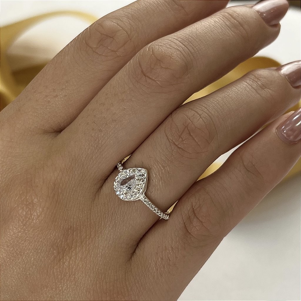 Anel Luxo Gota Com Zircônias - Prata 925 - MA502-33198