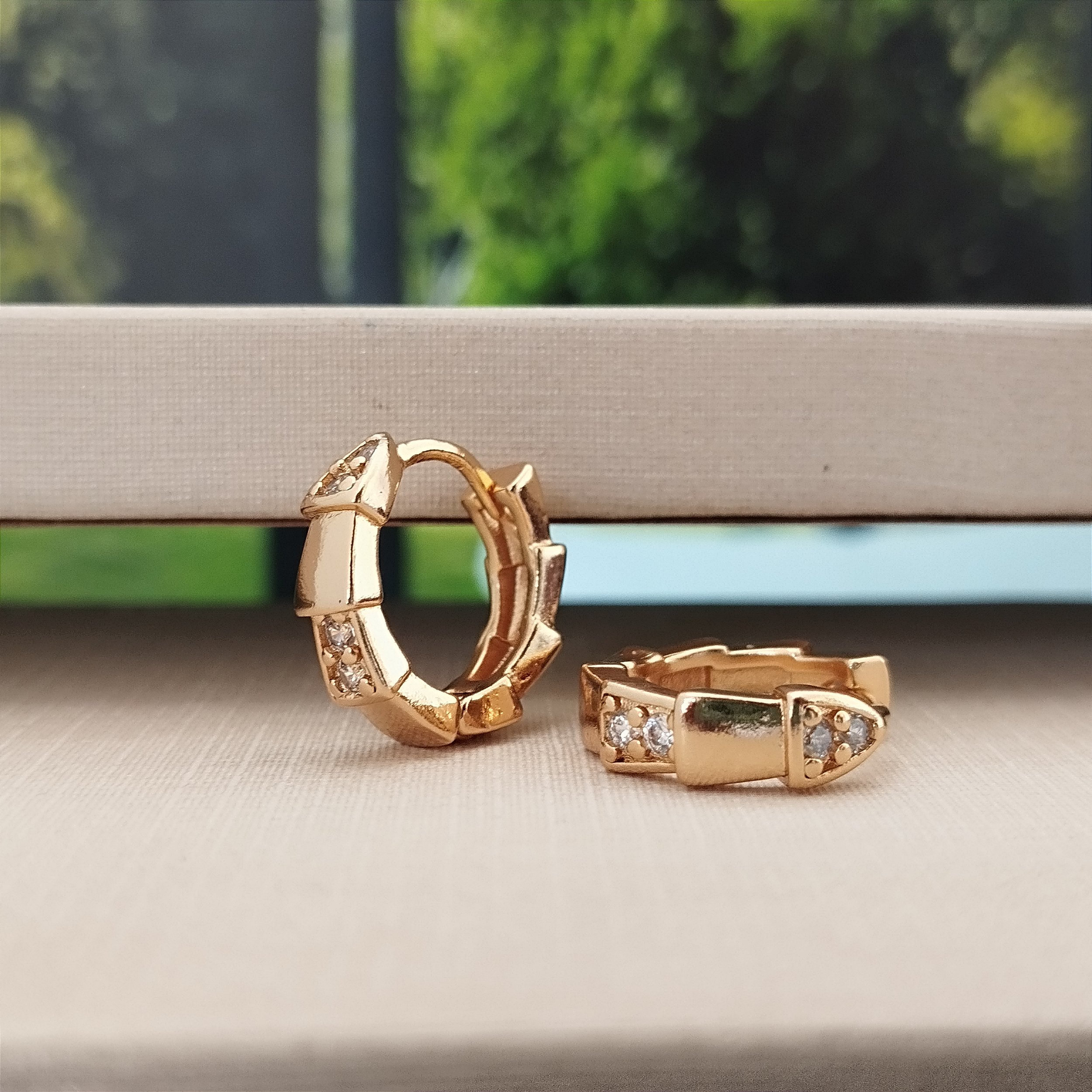 Argola Trabalhada Com Zircônias - Semijoia 18k -B531-10120