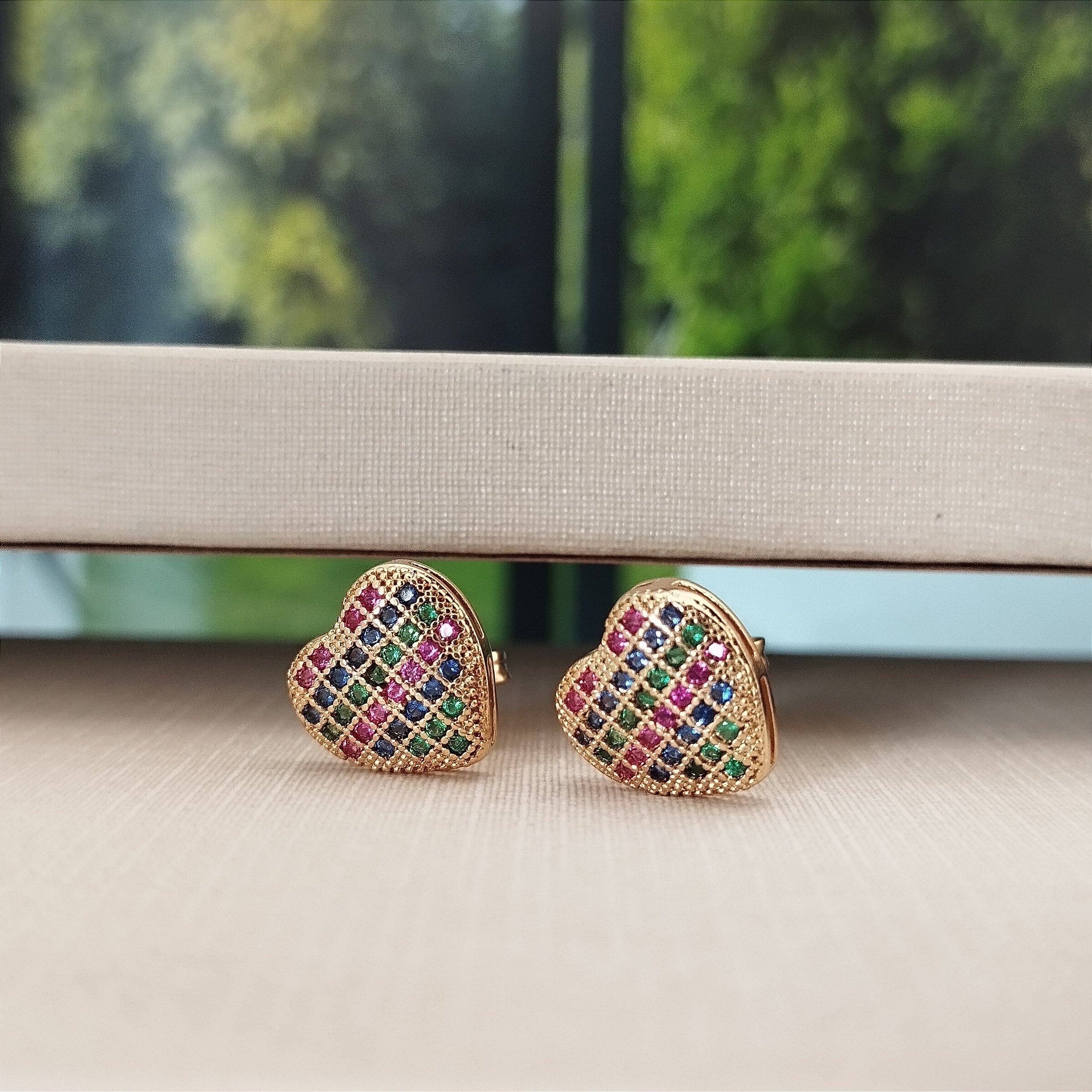 Brinco Coração Multicor - 10mm - Semijoia 18k